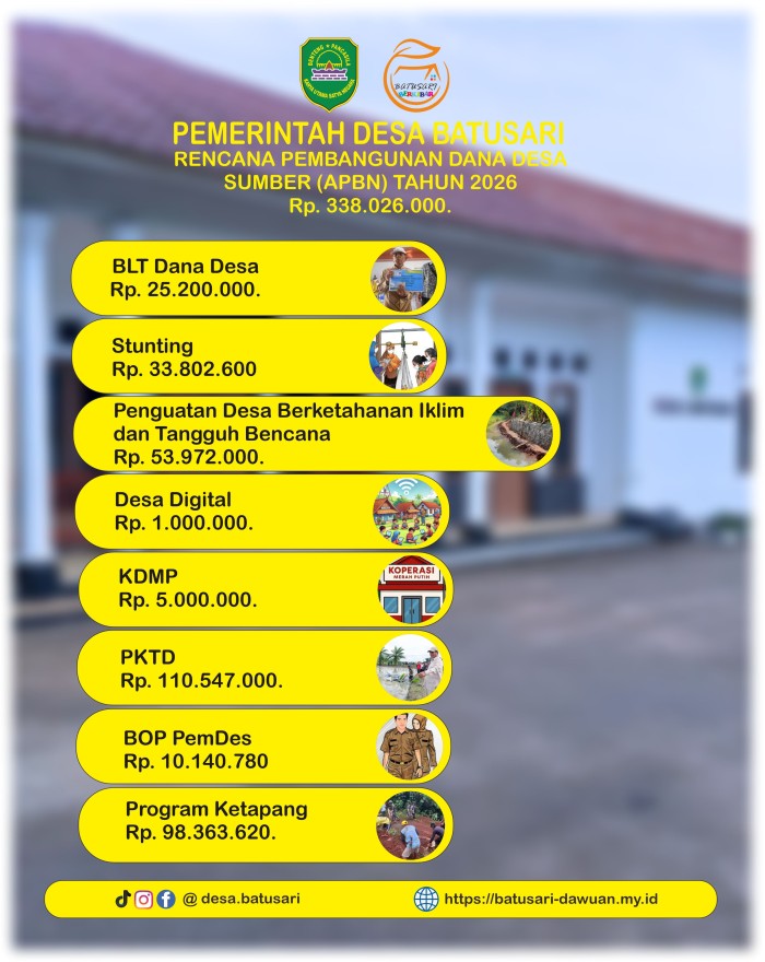 • Dana Desa Tahun 2026 sebesar Rp 338.026.000 akan digunakan apa saja oleh Pemdes Batusari...