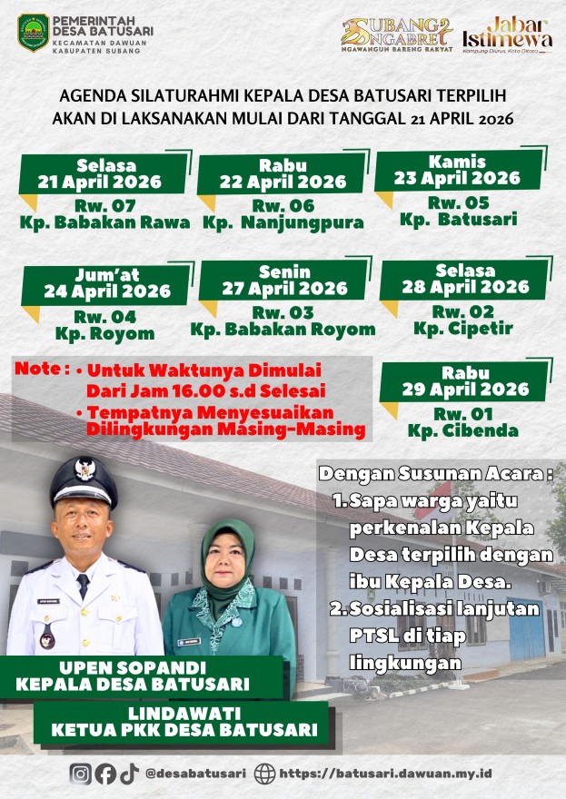 Alamat : Jl Cibenda No 01 Rt.0201 Desa Batusari Kec. Dawuan Kab. Subang kodepos 41273